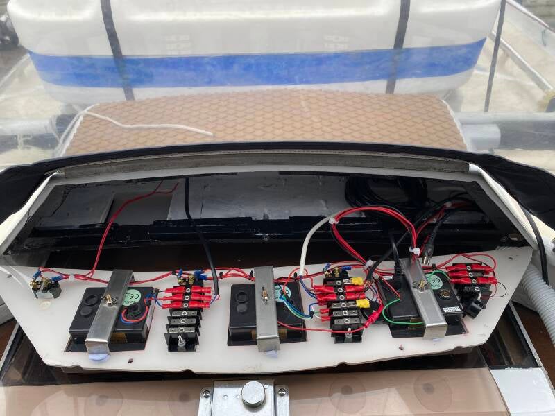 2018 habe ich den alten Steuerkompass auf der Säule im Cockpit demontiert und durch einen elektronischen Kompass ersetzt. Das Echolot und die Logge wurden auch ersetzt.